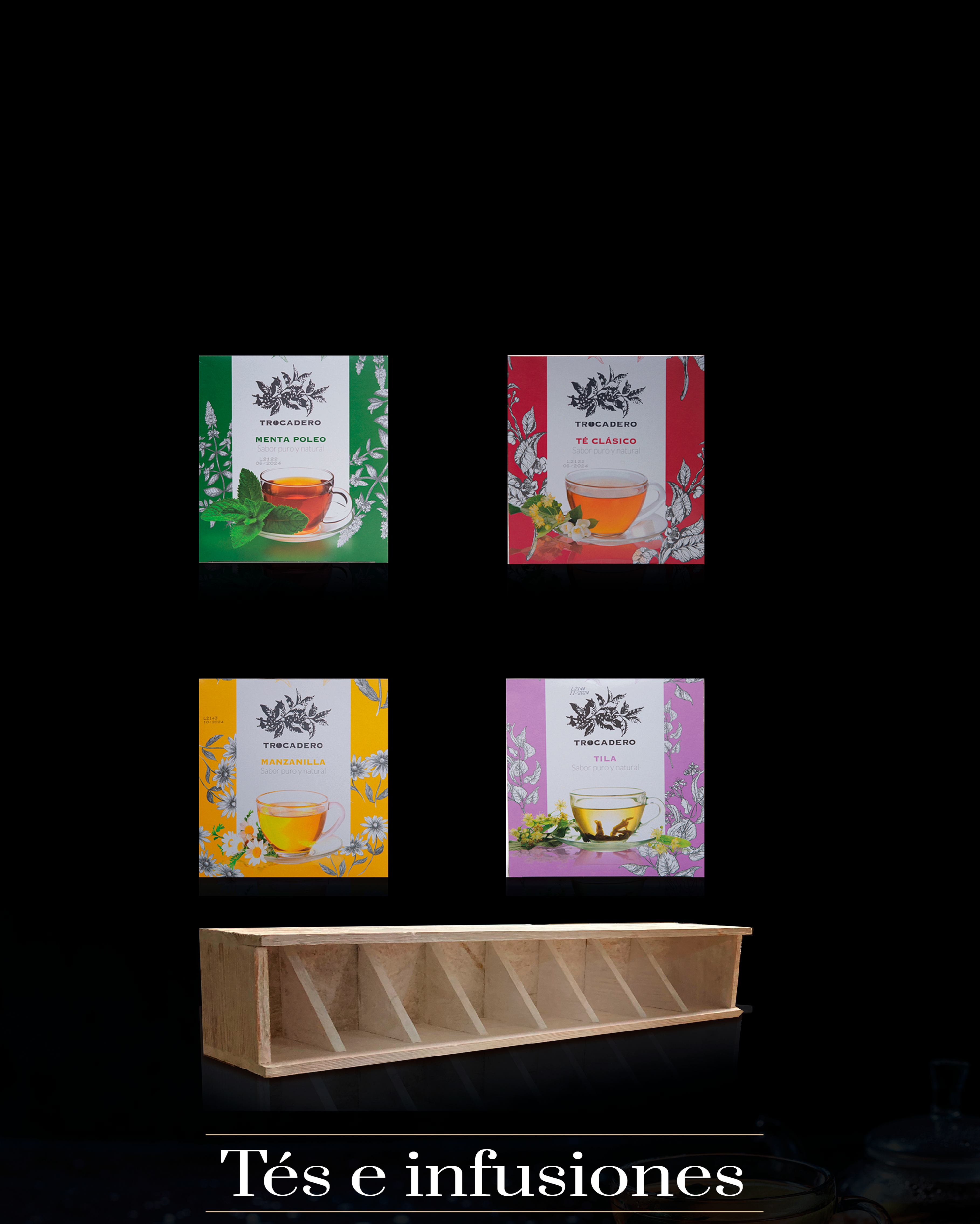 Infusiones tradicionales: Té clásico, Manzanilla, Tila y Menta Poleo